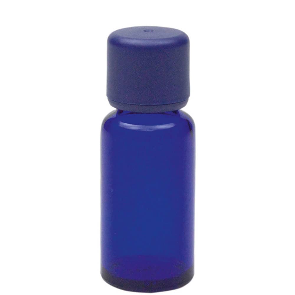 Blauglasflasche, leer, mit Körperölverschluss – erhältlich mit 20 ml, 50 ml und 100 ml Fassungsvermögen. Ideal, um z.B. das selbstgemischte Massageöl einzufüllen.
